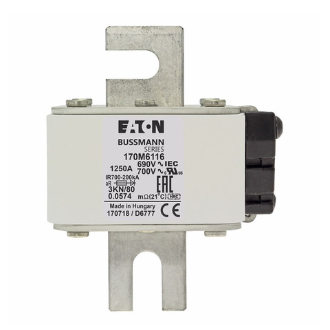 Fusible de cuerpo cuadrado de alta velocidad, 1250A, 700V, clase aR, 170M6116, Bussmann